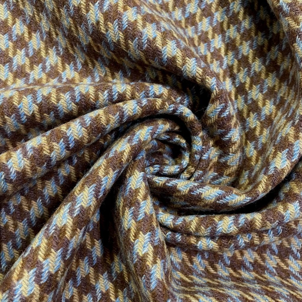 Костюмная ткань рисунком гусиная лапка.. Вечная классика. Ткань имеет неоднородную структуру, сложный состав - все это делает ее незаменимой при создании стиля деловой женщины. Ткань прекрасно подходит для пошива легкой верхней одежды, жакетов, костюмов,платьев и.т.п. Из ткани также можно создавать и отдельные детали в изделии - тесьмы, цветы, декоративные элементы. С этой тканью Вы сможете творить бесконечно. Не сложная в уходе.Практически не мнется. Сушить желательно в расправленном виде