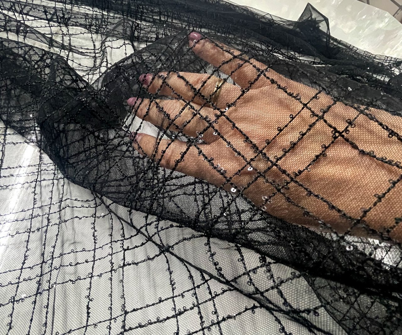Очень легкая воздушная, прозрачная ткань. Мерцание мелких пайеток разбросанных по ткани просто завораживает. С ее помощью Вы легко создадите неповторимый образ используя ткань, как для отдельных декоративных деталей , так и цельного костюма , пышной юбки, платья и карнавальных образов .