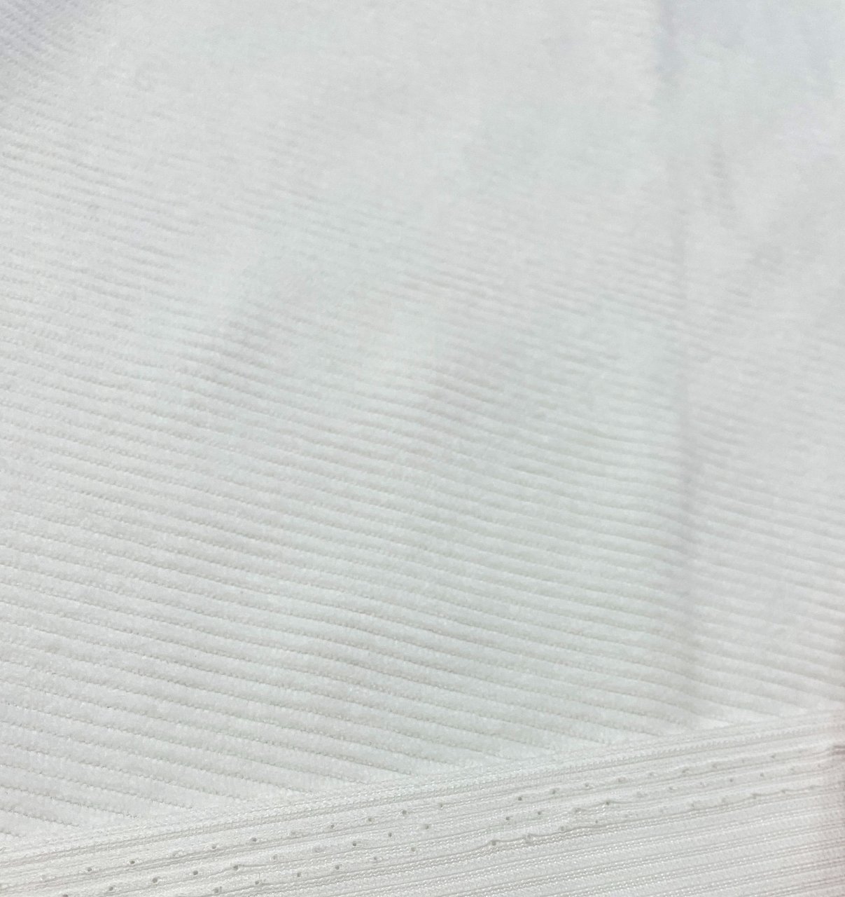 Плотный, и в то же время приятный материал с матовым блеском по лицевой стороне и нежной бархатистой поверхностью. На лицевой стороне классический ворс, создающий фактуру в полоску. Хорошая плотность ткани обеспечивает ее высокую износостойкость. Вещи из вельвета всегда актуальны, удобны в носке и не мнутся. Ткань прекрасно подходит для пошива свитшотов, платьев, юбок, а также спортивных костюмов.
